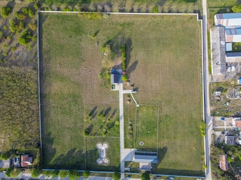 -2 méteres betonkerítéssel körbekerített terület (3,5 hektár)-állatok tartására alkalmas/ biztonságos