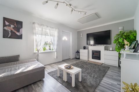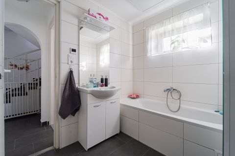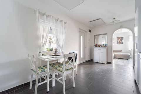 -Az alsó szinten tágas szoba (hálószoba vagy nappali), konyha-étkező, fürdőkádas fürdőszoba, külön mellékhelyiség és mosókonyha is helyet kapott