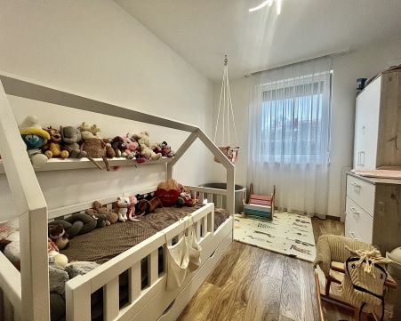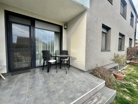 2017-es építésű tégla társasház földszintjén található az ingatlan, amely maga a nyugalom szigete. Belső színvilága modern, de mégis letisztult belső megjelenést kölcsönöz, magas műszaki paraméterekkel. A legtöbb bútor az ingatlanban beépített, tehát a vételár részét képezik. Műanyag nyílászárókkal, padlófűtéssel, Saunier Duval kazánnal ellátott lakásról van szó, amelynek saját kertkapcsolata is van 72 négyzetméteren. Az udvar füvesített, teljes alapterületet tekintve vakondhálóval ellátott, automata öntözőrendszerrel. A tárolás is megoldott az udvaron egy lemeztárolóval, ahova a grillsütő, fűnyíró kényelmesen elfér.