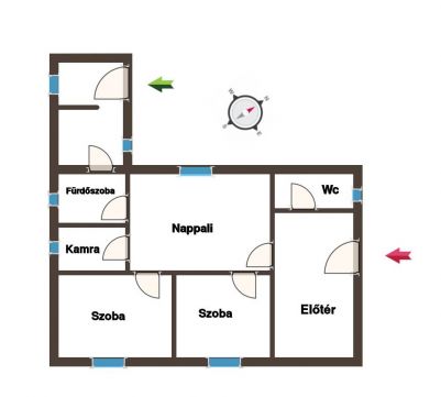-Helyiségei: 2 tágas, világos szoba, barátságos nappali, külön konyha és étkező, amely a családi étkezések központi helyszíne, fürdőszoba-wc külön helyiségben, kamra tárolási lehetőségnek.