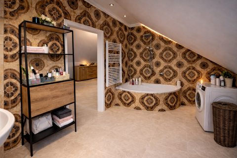 Az otthonban 7 hálószoba, 2 tágas nappali, 5 fürdőszoba és 2 külön mosdó biztosítanak minden kényelmet a család vagy a vendégek számára. A hat gardróbszoba akár szobaként is használható, így bőséges hely van a ruháknak és személyes tárgyaknak. A mozihelyiség, borospince, tárolók, konditerem, szaunaszoba mind egyedülálló lehetőséget kínálnak a kikapcsolódásra és az aktív életmódra.
