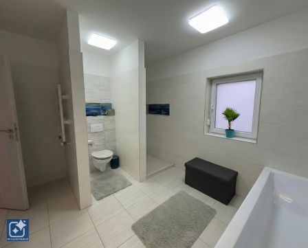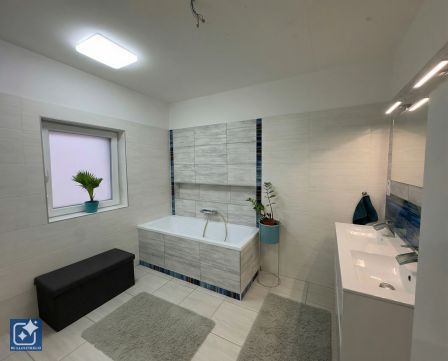 - Fürdőszoba káddal, épített zuhanyzóval, dupla mosdóval és WC-vel