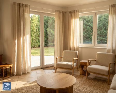 A házat a nap körberagyogja ezáltal a nap  minden szakában élvezheti, valamennyi  helyiségben vagy a teraszon a napfény sugarait.