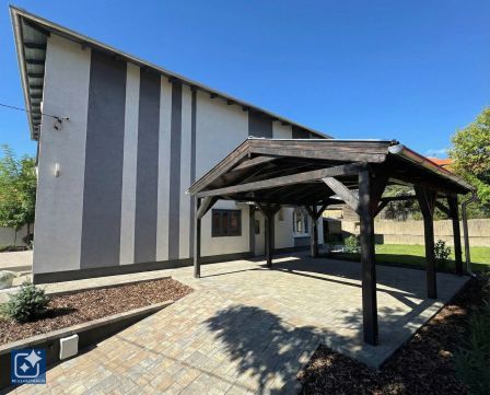 Eladásra kínálunk, 2 szintes tégla építésű szigetelt ház emeleti, 100 m2-es 3 szobás lakását saját kertrésszel, 1 autónak beállási lehetőséggel. Az ingatlan teljes felújításon és korszerűsítésen van túl. Fűtésrendszere Vaillant 24kW-os kondenzációs gázkazánról üzemel, 120 literes használati meleg vizes tárolóval szerelt, radiátoros hőleadással kialakított. Ablakai műanyagok, redőnyökkel szereltek. A burkolatoknál és a szanitereknél is prémium anyagokkal dolgoztak. Mindkét szintnek közös fedett, térkővel burkolt gépkocsi beállója van, és öntözőrendszerrel ellátott füvesített kertrésze. A teljes telek méret 576 m2, ehhez az emeleti lakáshoz kb. 256 m2 kertrész tartozik. Az ingatlan ügyvéd által készített használati megállapodással és vázrajzzal rendelkezik, ebből adódóan az új Otthon Start Program keretében, a  3%-os lakáshitel igényelhető rá. A bútorokkal berendezett helységek képei illusztrációk, az ingatlan jelenleg bútorozatlan. Ha további kérdése lenne, vagy megtekintené az ingatlant, kérem hívjon bizalommal.