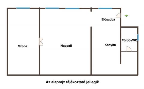 Elosztás: Tágas, amerikai konyhás étkezős nappali + hálószoba.