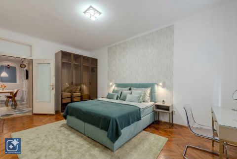 Molnár utcában, 1895-ben épült nagyon szép, eklektikus bérház első szintjén kínáljuk eladásra, ezt az összesen 115 nm-es 5 szobás, DUPLAKOMFORTOS, barátságos otthont, a Duna part és a Váci utca között.