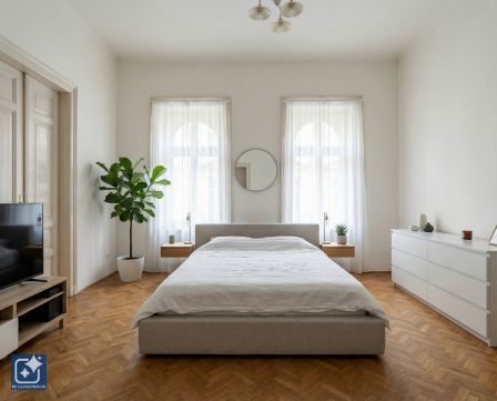 A jól karbantartott, zöld udvarral rendelkező, liftes ház 1880-ban épült, a lakás az 1. emeleten található, zárt folyosóról nyílik. Az előtérből lépünk a konyhába, ami mellett kamra is található. A közlekedőből nyílik egy előtér, onnan a fürdőszoba és egy külön WC. Mindkét szoba tágas, a sarokszobából akár két helyiség is kialakítható. Fűtése kedvező, cserépkályhába épített villanyfűtés. A lakáshoz tartozik egy tároló a pinceszinten. A villanyvezetékek kb. 8 éve részben fel lettek újítva, 1 éve pedig mérőórákat cseréltek.