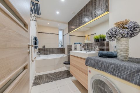 A lakást a modern, letisztult elegancia jellemzi: a minőségi és esztétikus kivitelezés minden részletében a legmagasabb színvonalat képviseli. A tágas közösségi tér mellett a két külön bejáratú hálószoba biztosítja az intimitást és a kényelmet.