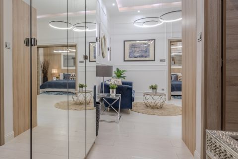 The apartment is characterized by modern, clean elegance: the high-quality and aesthetic craftsmanship represents the highest standards in every detail. Alongside the spacious communal area, the two separate bedrooms provide privacy and comfort.