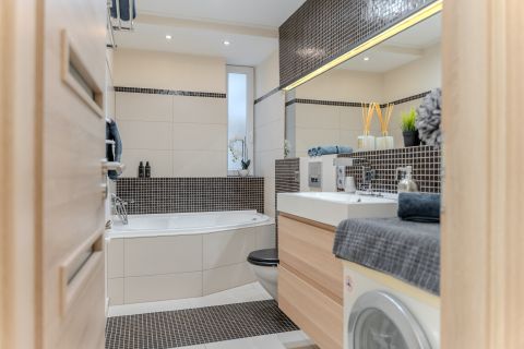 Prémium felszereltség: Igényes burkolatok, modern világítástechnika és minőségi anyaghasználat minden helyiségben.