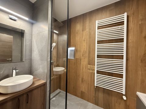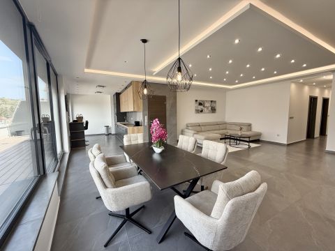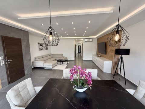 Az ingatlan központi tere egy hatalmas, fényárban úszó amerikai konyhás nappali, ahol a nagyméretű alumínium nyílászárók és a grandiózus üvegfelületek különleges térélményt és eleganciát biztosítanak. A lakás kialakítása a design és funkcionalitás tökéletes egyensúlyát tükrözi.