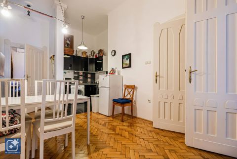 a részben cserélt nyílászárók mellett megtartották az impozáns beltéri ajtókat, valamint az időtálló, eredeti fa parkettát, amely elegáns összhangot teremt a korszerű megoldásokkal.
