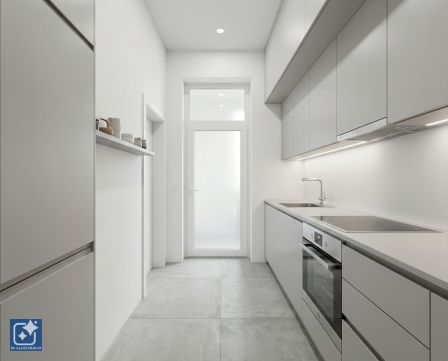 Lakás: - Belépés után a konyhával egybekötött előszobába lépünk ahonnan minden más helyiség is nyílik. Rögtön jobbra a 8.5 m2-es galériázott szoba, szemben a nappali található ahonnan egy galériázott hálófülke is nyílik. Belépés után rögtön balra a fürdőszoba nyílik.