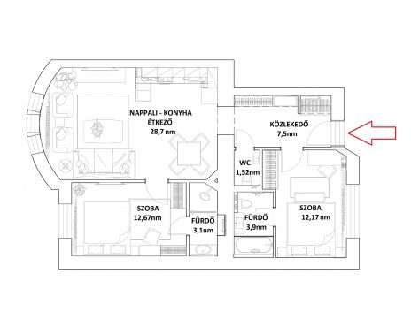 Az ingatlan 70 m²-es, és a terei zseniális újragondolásának köszönhetően helyet kapott benne egy tágas nappali-étkező-konyha, 2 hálószoba, 2 fürdőszoba, egy vendég WC és a megérkezéshez egy tágas előszoba.