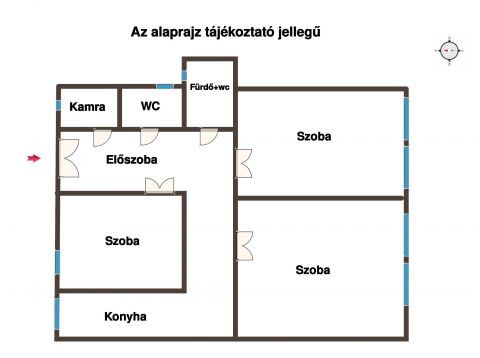A három szoba egymástól független, különnyíló, így családnak vagy irodának is ideális. A konyha külön térben található, mellette kamra segíti a tárolást. A komfortot gázcirkó fűtés és klíma biztosítja, fürdőszoba WC-vel, valamint egy különálló WC is rendelkezésre áll. A házban nagyon jó lakóközösség van, rendezett a környezet.