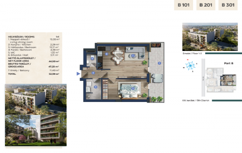 A kínálatban 1, 2, 3 és 5 szobás, változatos elrendezésű lakások érhetők el, így a projekt egyaránt ideális első lakásvásárlóknak, családoknak, valamint azok számára is, akik nagyobb, tágas életteret keresnek.